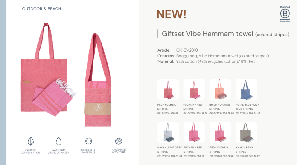 Zowel de Hammandoeken en de Baggy Bags zijn gemaakt van 50% gerecycled materiaal.