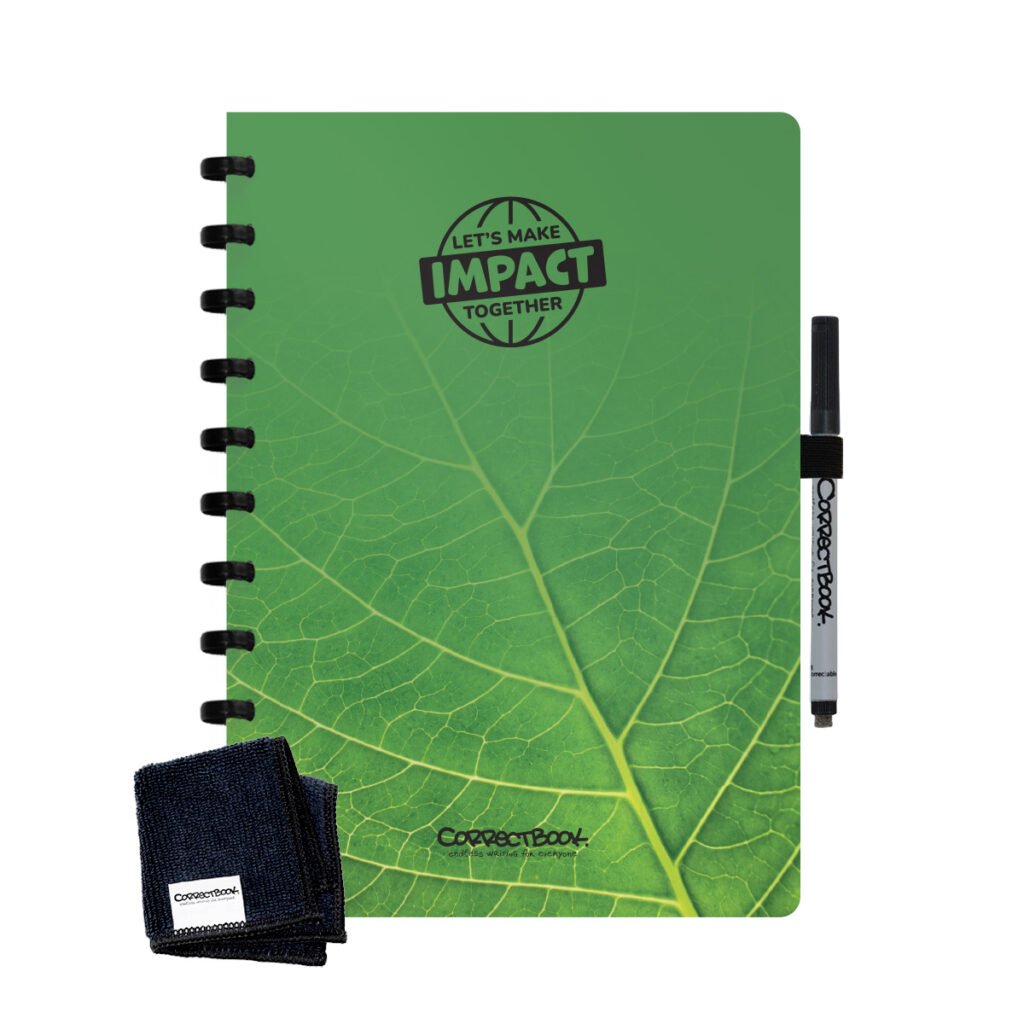 Correctbook; uitwisbare en herbruikbare notitieboeken. Vergelijkbaar met een whiteboard in schriftvorm. Alle geschreven notities drogen binnen seconde.