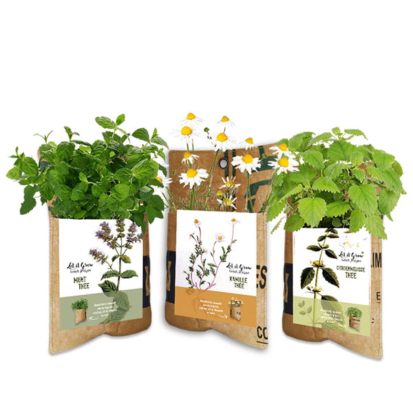 De hangtuintjes heb je met citroenmelisse – munt en kamille zaden.