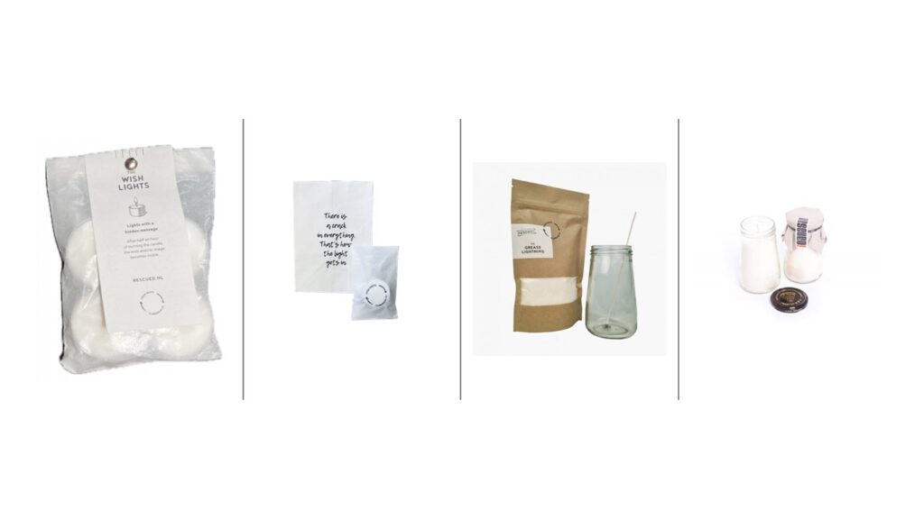 De kaarsen zijn handgemaakt van gerecyclede bakolie opgevangen bij Nederlandse bedrijven.